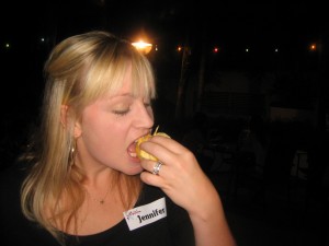 Catherine (my BFF from guest services) plucks a supposedly “good” piece from the spiky shell.