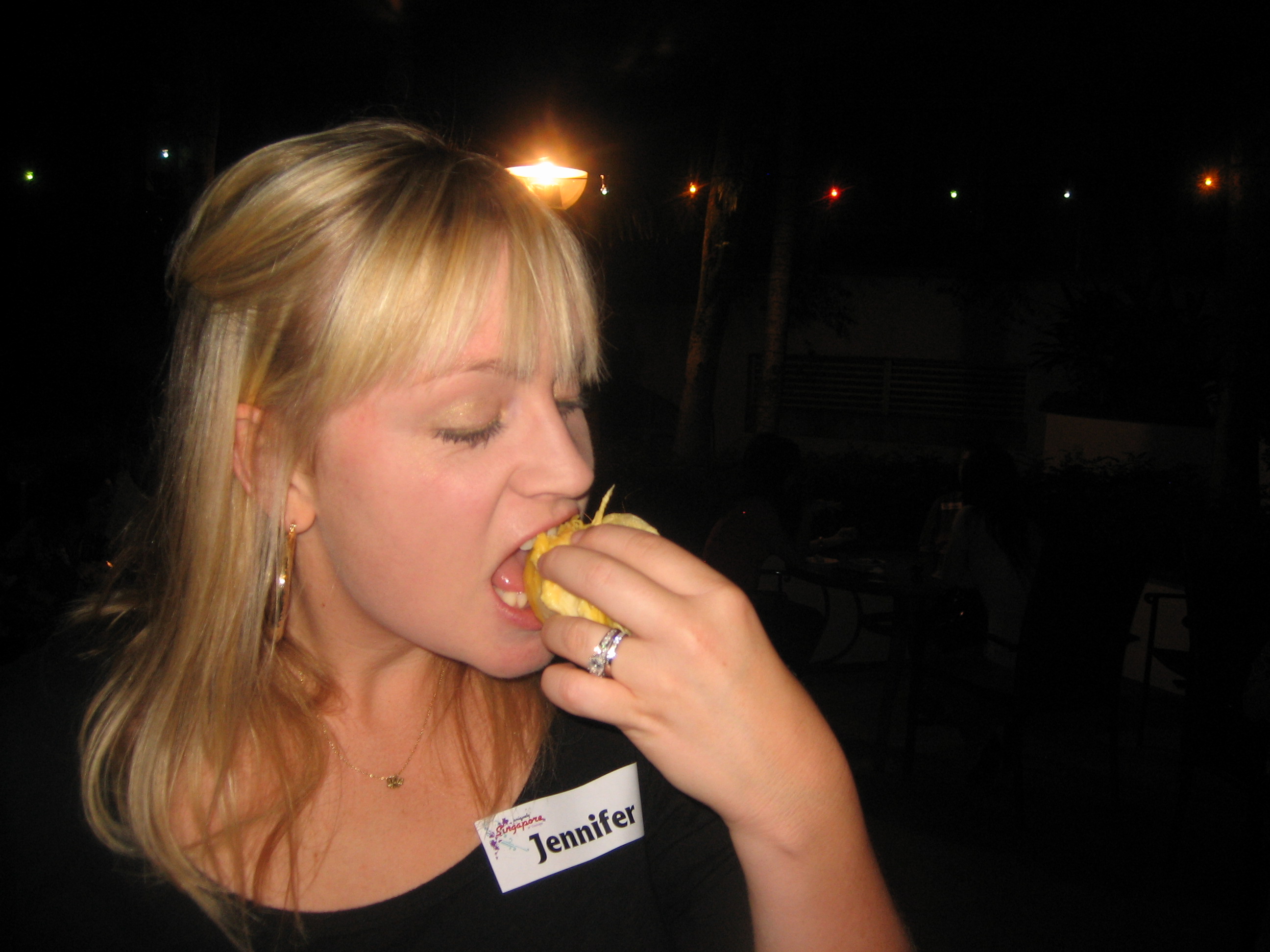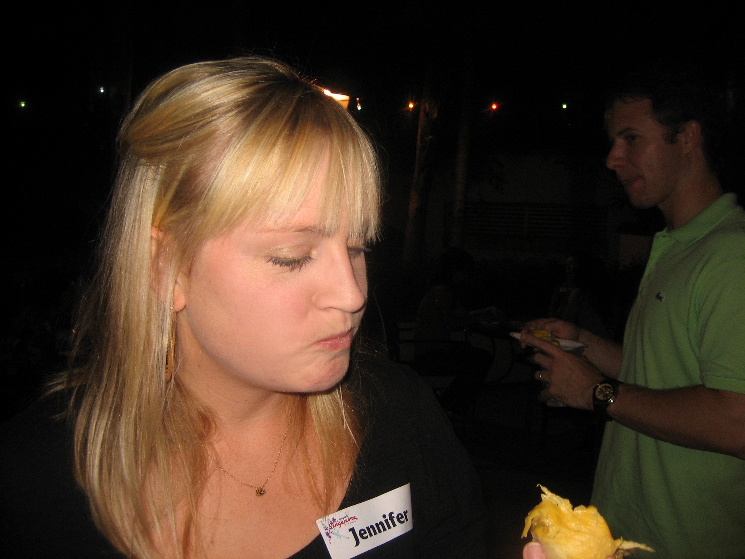 Based on the smell and the rumors alone, John and I had successfully avoided durians up until recently. But when our service apartment had a little party and durians were part of the fare, we decided to just go for it. The staff told us to try not to think of it as a fruit, but rather as if we were tasting a fine cheese. Okay, sure. Fine cheese it is.