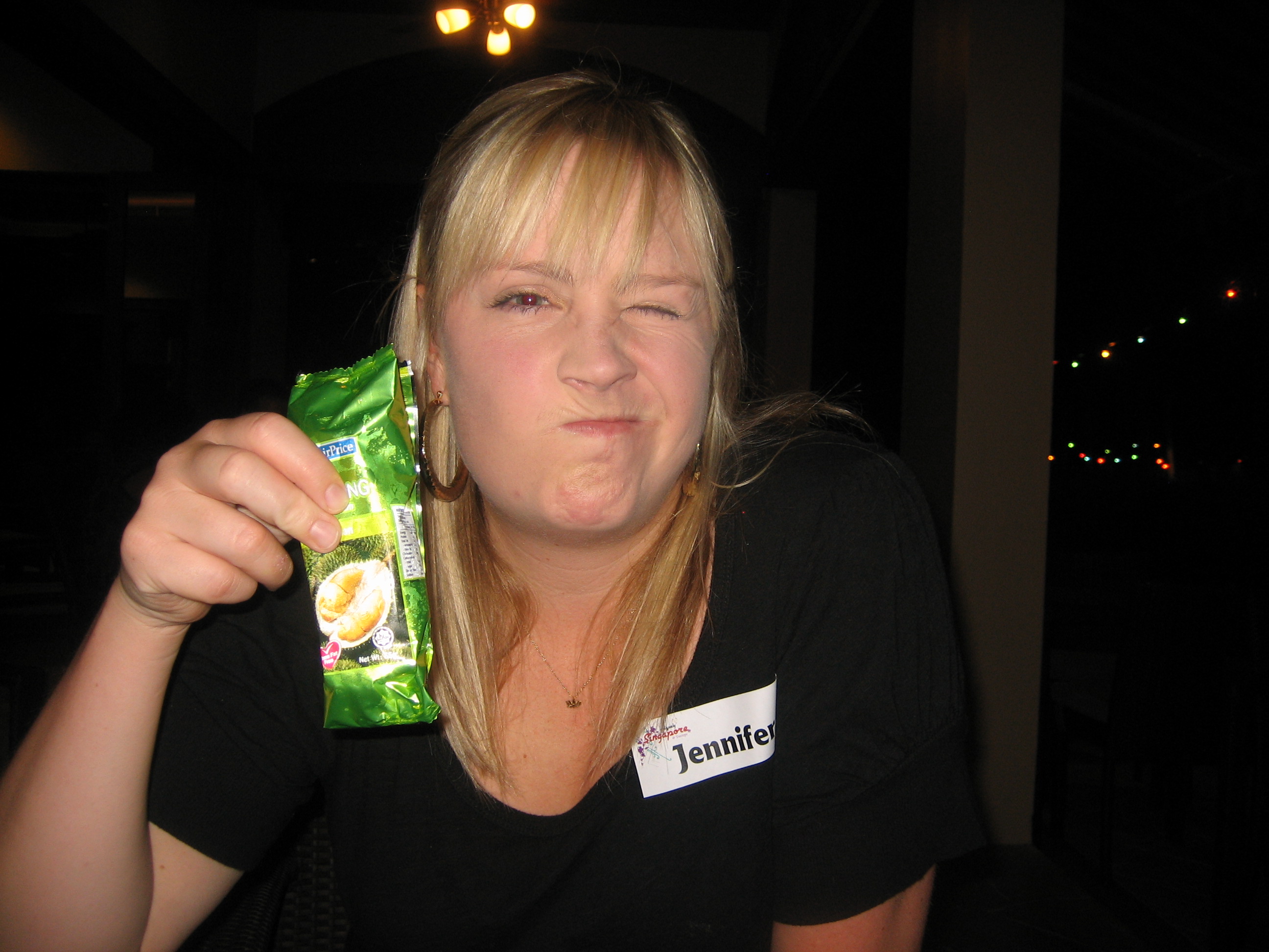 I decide to cleanse my pallet by having a popsicle. Of course I fail to look at the wrapper – it’s a durian popsicle. Disgusting.Â